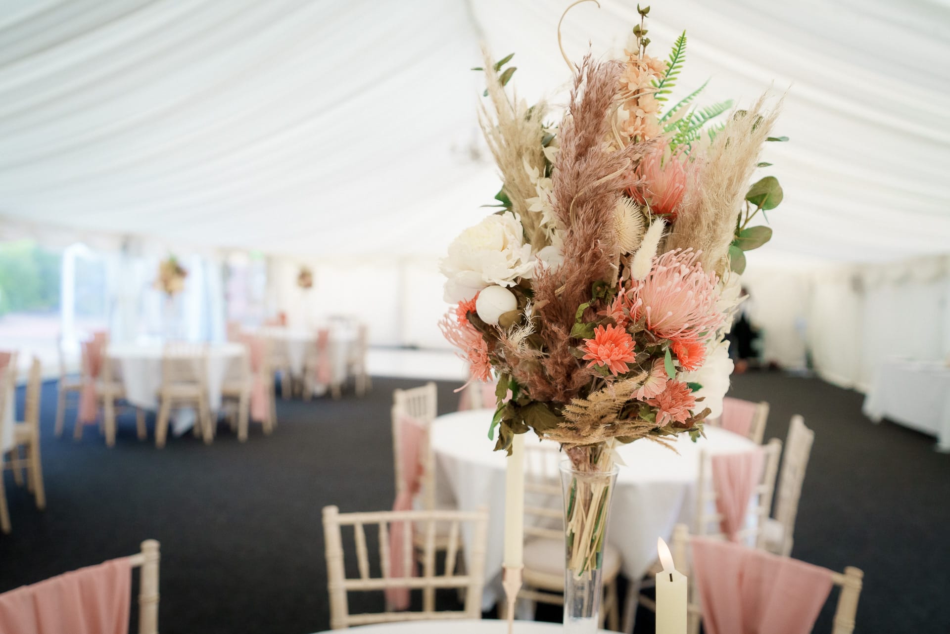 If you have a larger guest list, or perhaps just looking for something different, our beautiful, spacious marquee holds up to 140 guests, with exquisite draping and its own private courtyard, creating an enchanting setting for you and your guests on your wedding day.